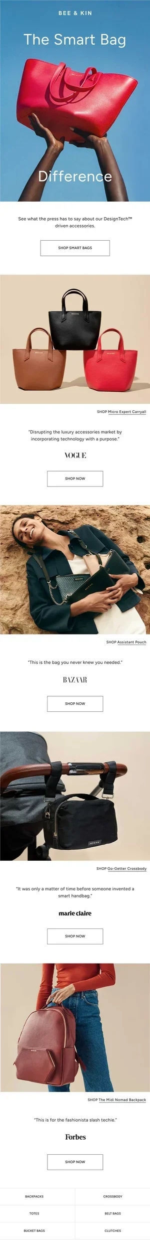 Bee & Kin creates thoughtfully designed bags & accessories fused with smart technology to revolutionize the interior of their products.