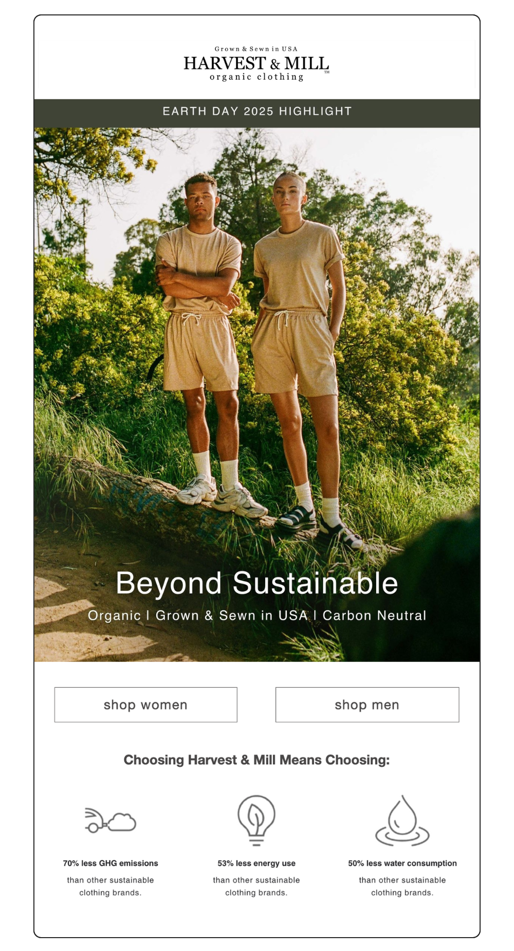 We partnered with Harvest & Mill to scale sustainably, staying true to their slow fashion values through every step of growth. With a cohesive strategy across paid ads, email, and lifecycle marketing, we built an ecosystem where every channel worked in sync and told the same mission-first story. The result? 120% increase in eComm revenue, a 33% lift in marketing ROI, and a 38% lift in customer lifetime value.